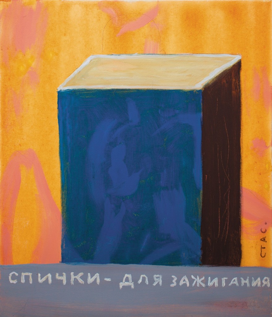 «Спички» Стаса Серова — это некое выявление образа спичек вообще, потом его успешное отрицание, а потом, через отрицание, и полное непонимание, в принципе, чем этот объект является. Стас, как успешный поп-артовский художник, его иронично подписывает как «Спички для зажигания». Потому что спички могут быть вообще для чего угодно. Это научная лаборатория неутомимого экспериментатора от искусства.