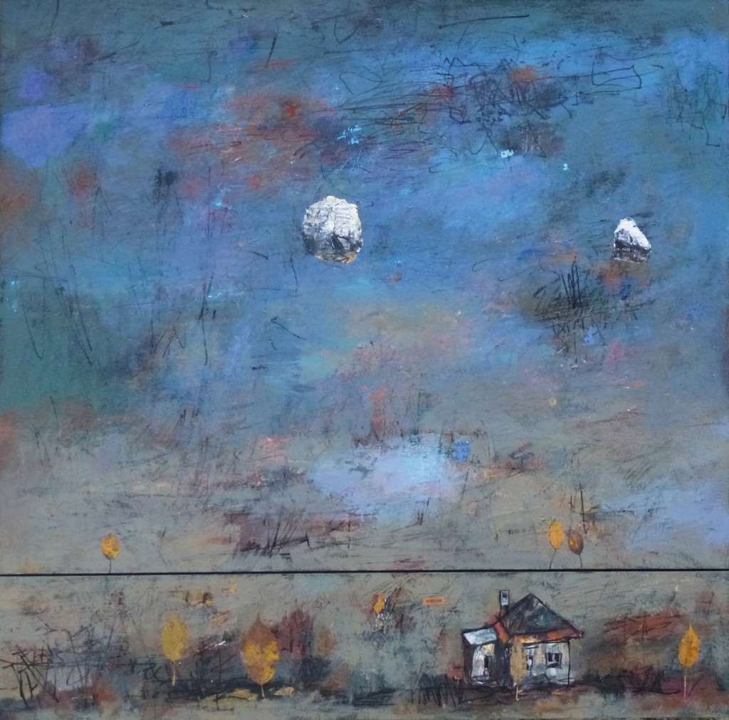 Живопись Геннадия Кузькина — это история приключений неутомимого романтика. «Горизонт» — его космическая притча. На фоне живого лазурного воздушного фона несколько висящих в невесомости фигур, похожих на метеориты, тонкой полоской намеченная линия горизонта, домики, кажущиеся игрушечными. Картина не перегружена деталями, рождается ощущение зыбкости, ирреальности образа. Художник не ставит перед собой задачи поразить зрителя, вызывать в нем беспокойство неожиданно неестественной композицией, не навязывает некий символически-ллегорический подтекст, постигаемый лишь рассудочным усилием фантазии. Это живое и непринужденное путешествие в Персональный космос художника.