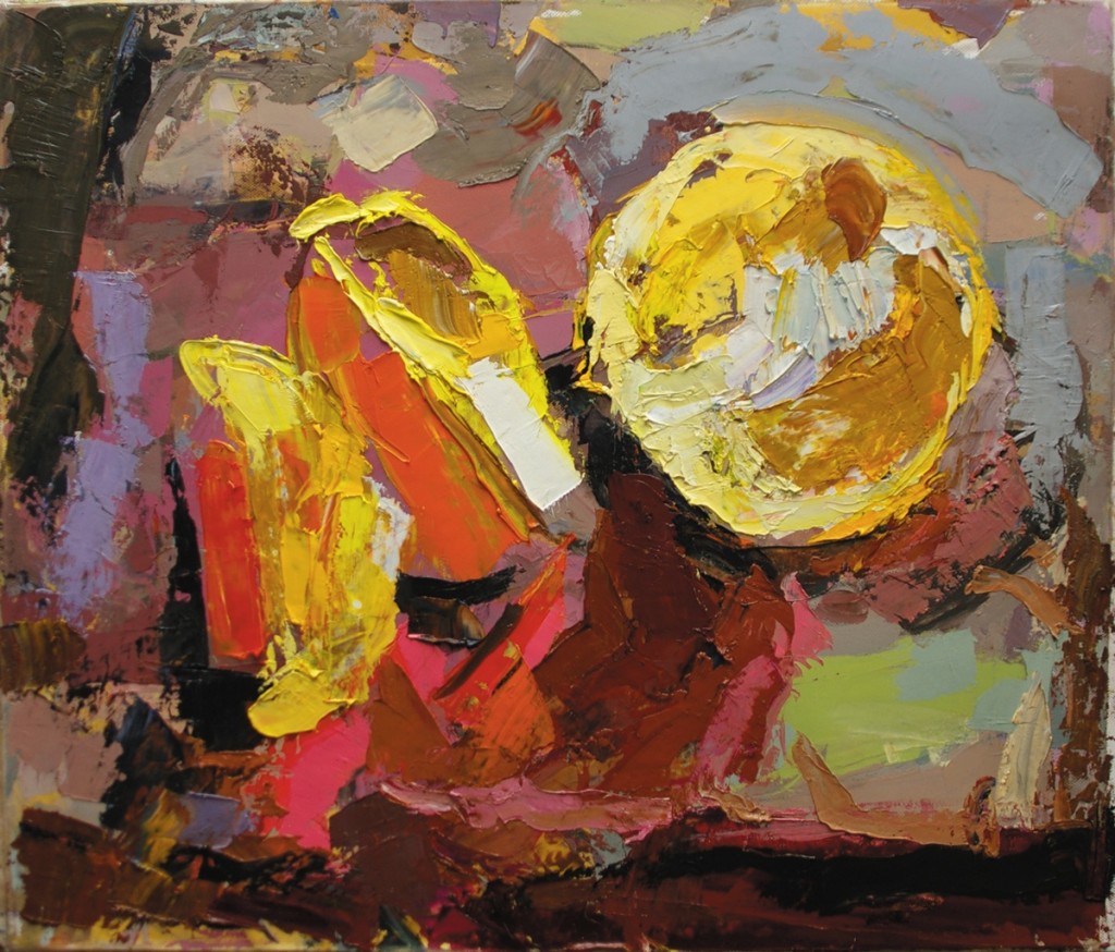 Кирилл Васеленок родился в 1969 году в г. Орша, Беларусь. Живописью начал заниматься в 1991 году Одинаково серьезен ко всем техникам, материалам и форматам. В начале 90-х — вернисажи, в конце — выставочные залы разных городов. Живопись умерла? Да здравствует живопись! Виртуозная экспрессивная манера, в которой выполнен «Апельсины» Кирилла Василенка, заставляет нас вспомнить о триумфе живописи, о живописи как таковой — светлой, быстрой, яростной, вызывающей вздох восторга, отключающей отягощенную смысловыми галлюцинациями голову. Может быть, в искусстве и сказано все, однако еще все не сделано, есть еще куда двигаться