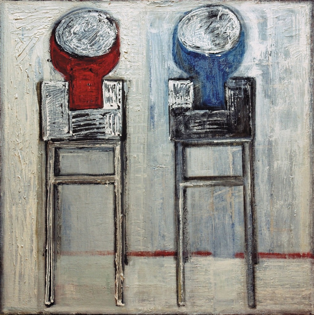 «Два табурета» Дмитрия Самодина — это обращение к глубинным эмоциям игры. Выявление структуры очеловеченной изначальной сути предмета. Дмитрий Самодин смог показать его художественную значимость без акцентов и сетей, расставляемых культурой и мифом. Здесь нет попытки донести до зрителя смыслы, осуществить и воплотить «ознакомление» с натурой. Передается внутренняя суть предмета для осознания зрителем ее свойств и конкретных форм воплощения.