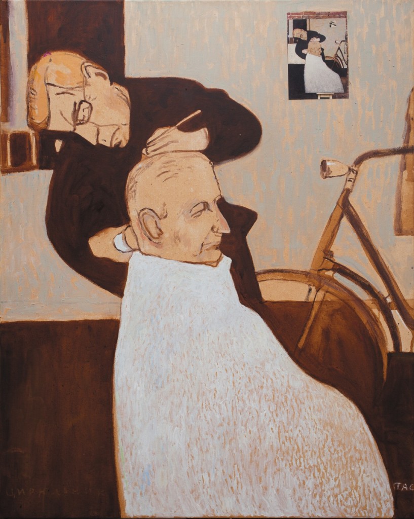 Стаса Серова интересует прежде всего человек, его тихая будничная повседневная жизнь, вчера, позавчера или сегодня, его лицо, руки, фигура, которые несут отпечаток прожитых лет, его неповторимого характера. «Цирюльник», конечно, не реалистическое изображение, но несет в себе то же состояние, то чувство, которое вызывает ностальгическое воспоминание или старая любимая фотография.