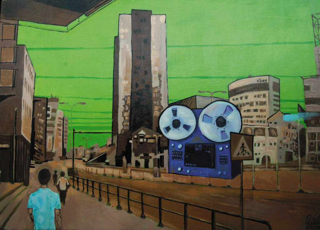 «На этой работе — одна из улиц Таллина. Это широкий проспект, наполненный движением. Конечно, я постарался композиционно преобразить реальную улицу и оставить настроение, созвучное моему, когда я там находился. Это заметки о путешествиях, выполненные на холстах». Владимир Дудкин