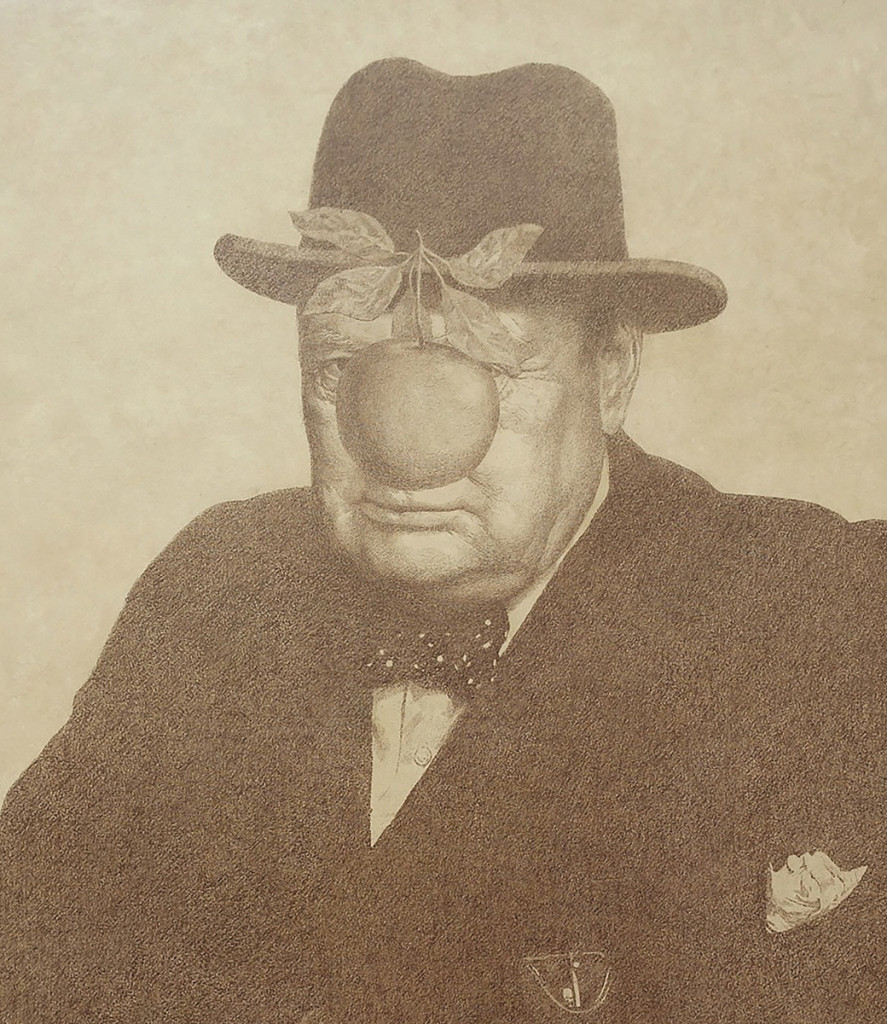 «Картина, иллюстрирующая утопическое прошлое. Известно, что история не терпит сослагательного наклонения, однако интересно было бы представить прошлое, в котором консервативные лидеры разных стран были бы знатоками и ценителями современного искусства. И заказывали свои портреты, например, у Рене Магриттта». Владимир Колесников