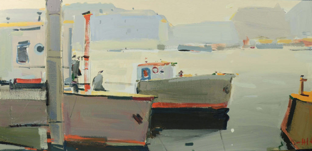 Стилизованные до уровня простых геометрических форм и локальных цветовых пятен, элементы композиции складываются в целостную картину узнаваемого пейзажа.