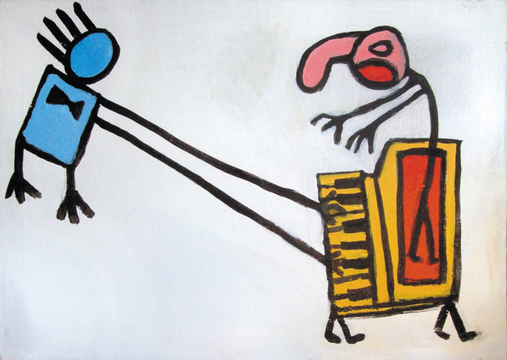 Взбунтовавшийся инструмент набрасывается на исполнителя, символизируя «муки творчества» автора и сопротивление «материала»