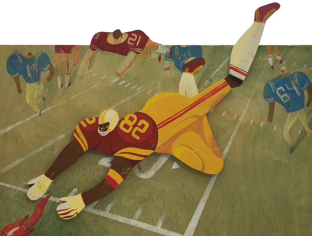 Немного гротескная стилизация обращения к «вечным» американским ценностям — футболу, где играют руками, что само по себе уже оксюморон.