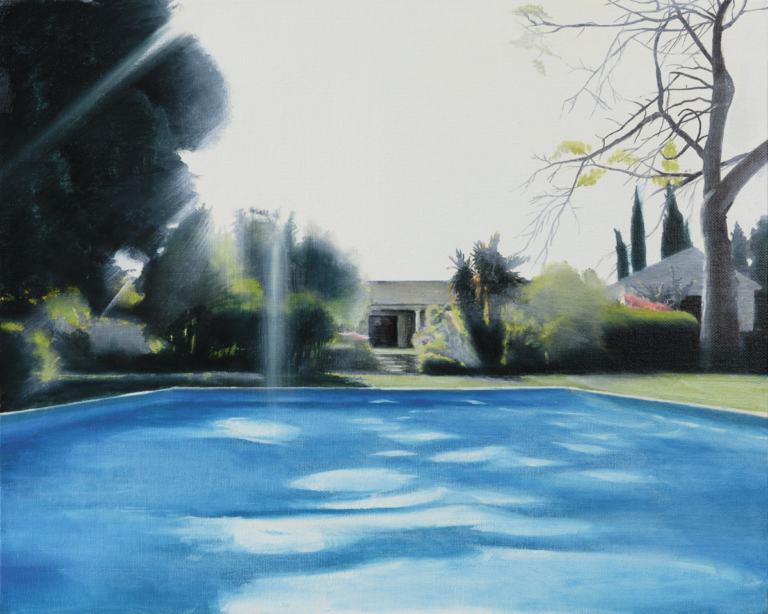 Современный пейзаж, построенный на поэтизации обыденности, заставляет обращать внимание на непритязательные с первого взгляда объекты, изначально лишенные всякой эстетической составляющей. Лучи света пробиваются сквозь листву, окрашивая утренний пейзаж холодной полупрозрачной дымкой, бледное небо отражается в насыщенной синеве водоема еле уловимыми бликами.