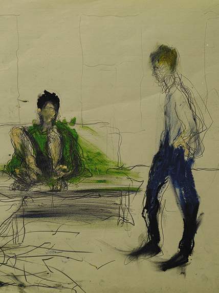 Material, technique: Paper, pencil, oil pastel