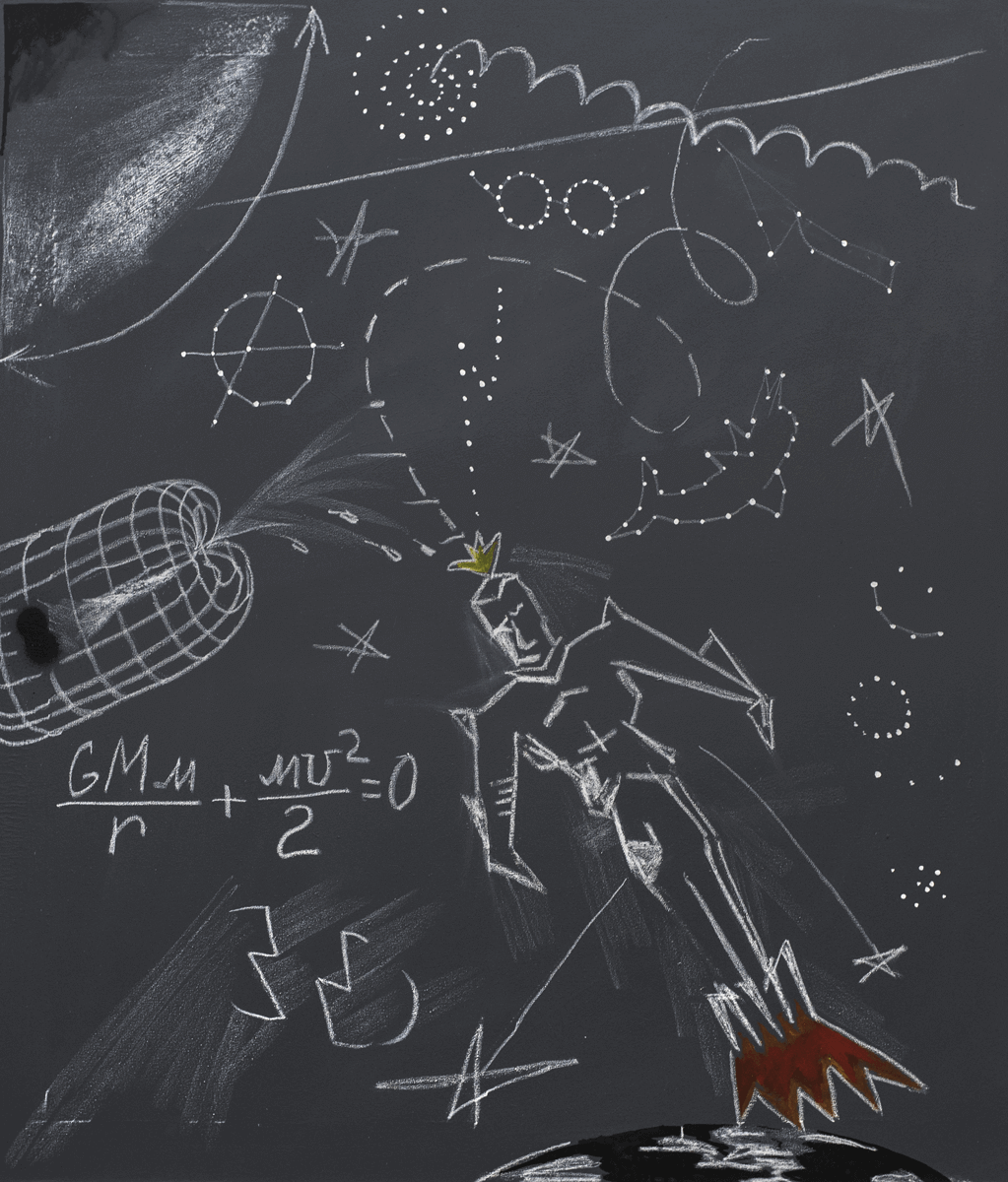 Launched on the day of Stephen Hawking’s death, this work is devoted less to the initial Gagarin space flight, but the immensity of human thought itself, presenting events that are hundreds of millions of light years away. This work speaks to the materials of thought that great discoveries are made: chalk and a board.