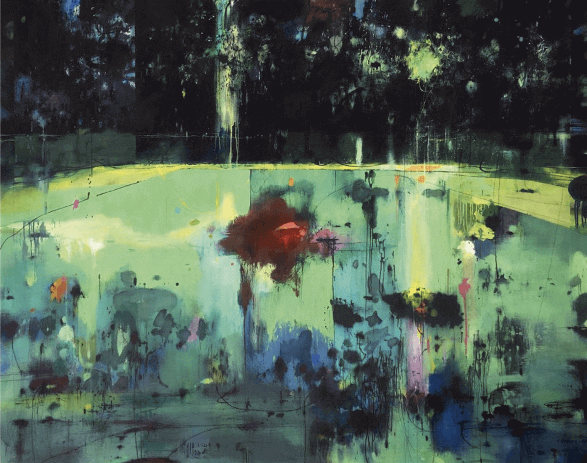 “Green & Black” is based on a combination of contrasting colors and subtle, complex shades. In the center of the composition, a bright yellow line seems to break its way from the depths of the image. The brave color combinations convey the simultaneous feeling of joy and anxiety.