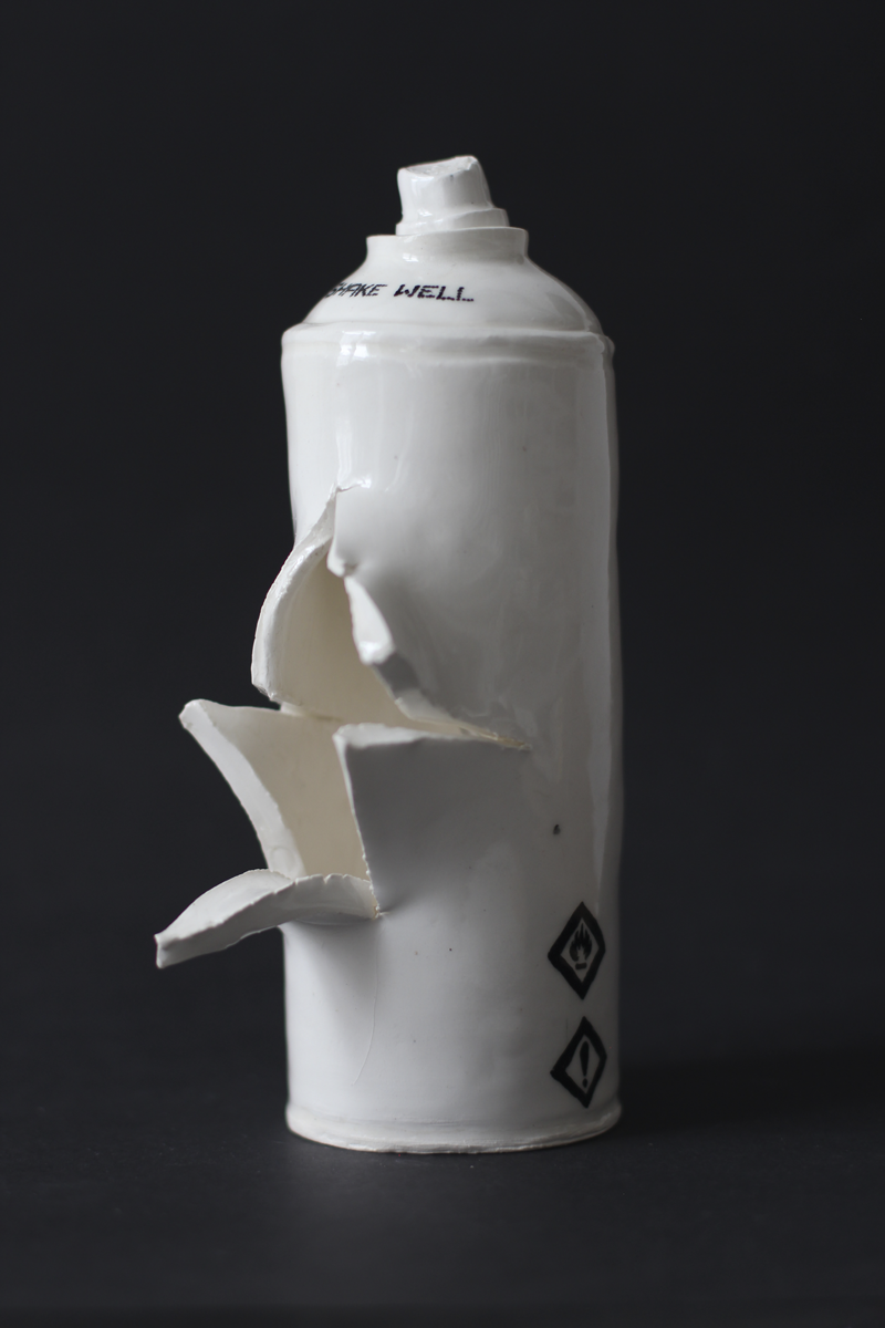 Ivan Sery is a Nizhny Novgorod street artist and curator. For Ivan, “traditional” street art has acquired new forms of interaction with the audience and the city; recognizable miniature objects penetrate into the canvas of the buildings facing an attack of the citizens on a par with them. Lately, the artist has intensely worked with photorealistic paintings, ceramics, installations. Born out of protest, street art appeals to innocent and unpretentious insolence. Clad in peaceful white ceramic mass, this struggle tool loses its intimidatory properties; it is “museumified” and presented as a petrified artifact, not devoid of expressiveness.