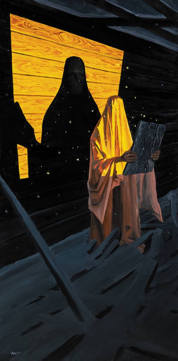 Andrei Olenev is a Nizhny Novgorod painter, street artist, a member of the Muddlehood graffiti writers group, a co- founder of Tolk Gallery. He is known for his murals on the facades of old buildings in the historical center of Nizhny Novgorod. Andrei is a participant of street art festivals, including Zdes (Voronezh) and Art-Ovrag (Vyksa). His works have been exhibited in Triumph Gallery and Arsenal Center for Contemporary Art (Nizhny Novgorod). The very title of the work refers to the metaphysical reality which gives birth to a double or, rather, a shifter and mirror phantoms that link the exterior and the interior in an encrypted, mystical form of expression. Every detail of the work is related to the part of space and state determined by the surrealistic mixture of the cultic liberation and the return to the shifter image through a ritual hypnotic trance.