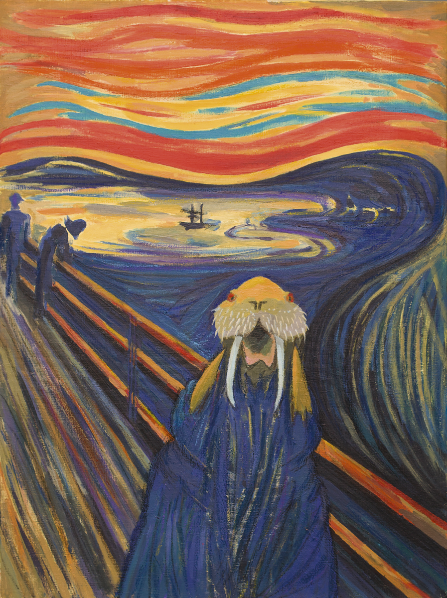 Paintings have been recognized as the most popular and best-selling form of art. Therefore, in their oppositional Black Market, the artists distributed small canvases of the most popular configurations. For example, there isn’t probably a single person who wouldn’t recognize one of the most expressive, intense and expensive works in the history of art – The Scream. The charming character Margin is to find out the true spread between the real cost of art and its price in the Black Market.