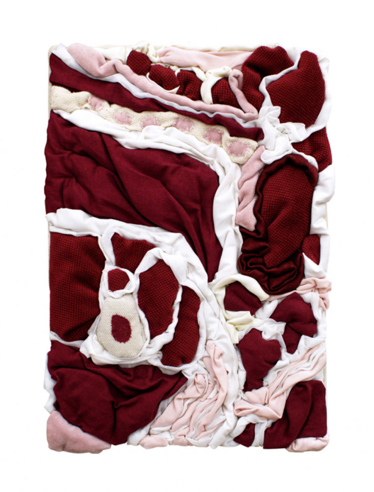 The rag steak continues the series of gastronomic objects created by “Businki”. Reflecting on female occupations, the artists felt the need to artistically compensate the gap which occurred in their lives as they have chosen artists’ paths rather than traditional female ones. The borsch they “cooked” happened to be a huge sewed pot. The steak takes over the story about textile gastronomy. This time the artists recreate the juicy texture of raw meat choosing the most relevant fabrics, so the image could also be read as a sensual textile abstraction. The moment of co presence is an important part of their work: the process of creation for “Businki” is a co-authored practice reflecting the connections inside the group.