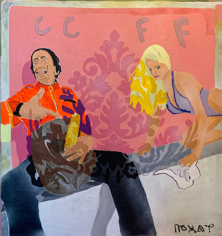 The effect of a journey into the unconscious is achieved by the artist through the reduction of cultural layers: he makes Salvador Dali a hero of an erotic scene. Dali, dressed in a tracksuit, makes a performative gesture, with an ear of corn signifying an organ of his body. At this point something happens to the image, it seems to fall back in time. The plot acquires the ability to directly influence the image demonstrating the performative potential of art.