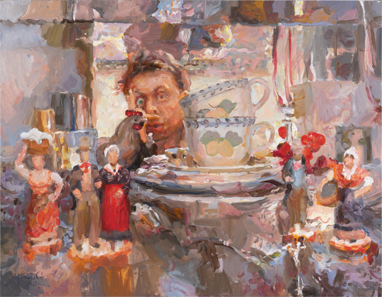 In his renowned impressionistic manner, Konstantin Lupanov depicts the sideboard as a microcosm: inside these mirror- glass worlds there are artifacts of different eras, which have been collected for generations, as well as geological layers of family memory. A self-portrait is built in the composition in a way that the artist, who accidentally glanced into the sideboard mirror, finds himself in the bustling epicenter. Objects and their reflections are continuously communicating with each other, and now you and your reflection are parts of this dusty layered microhistory world.