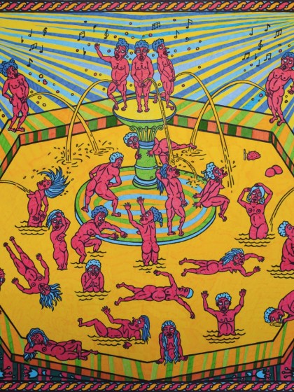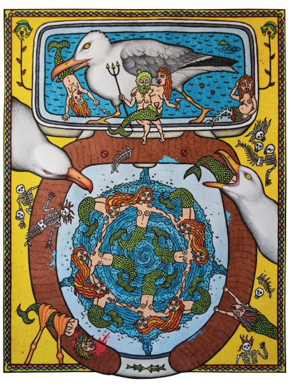 2014. Wood block, markers. Edition 4/10, unique coloring. 60х66 cm.