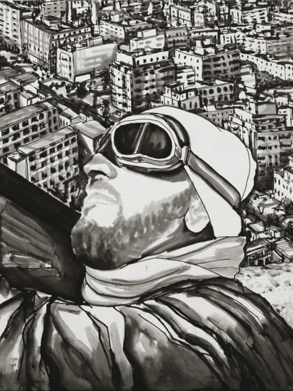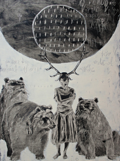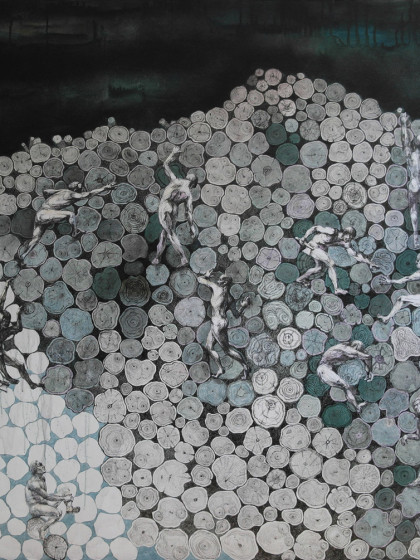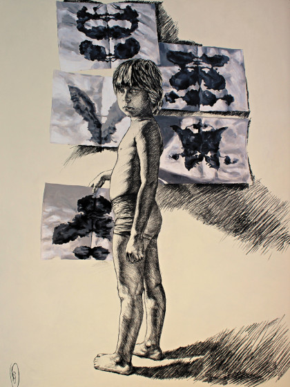 2011. Paper, ink, canvas transfer. 100х70 cm.