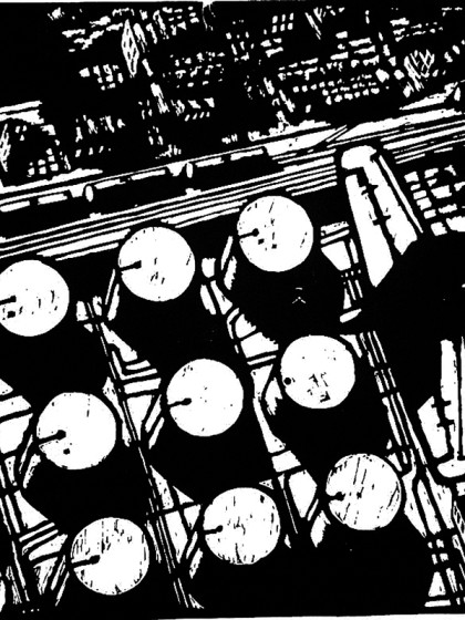 2002. Engraving on a Brazilian plywood. 144х99 cm.